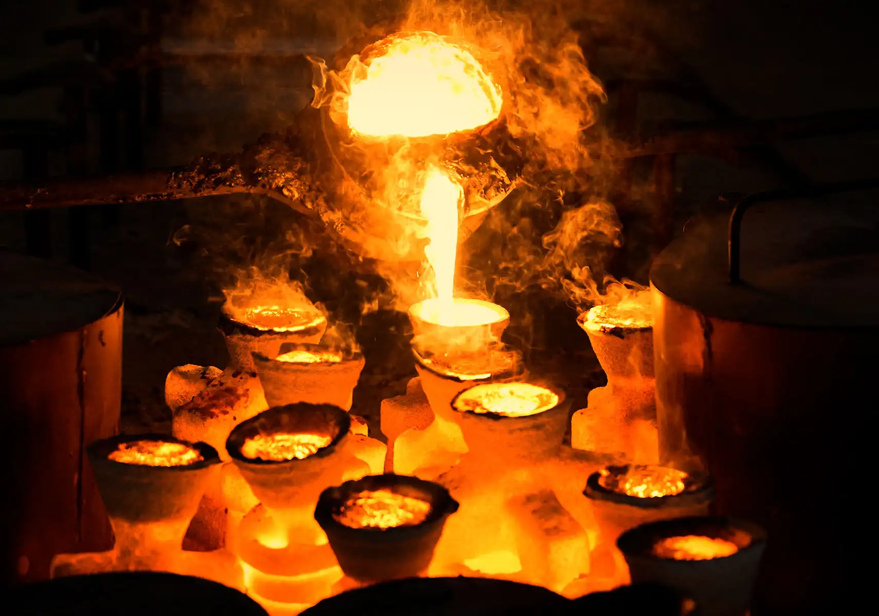 Üretilecek parçanın malzemesi, modern indüksiyon ocaklarımızda hassas sıcaklık kontrolü ile eritilir.