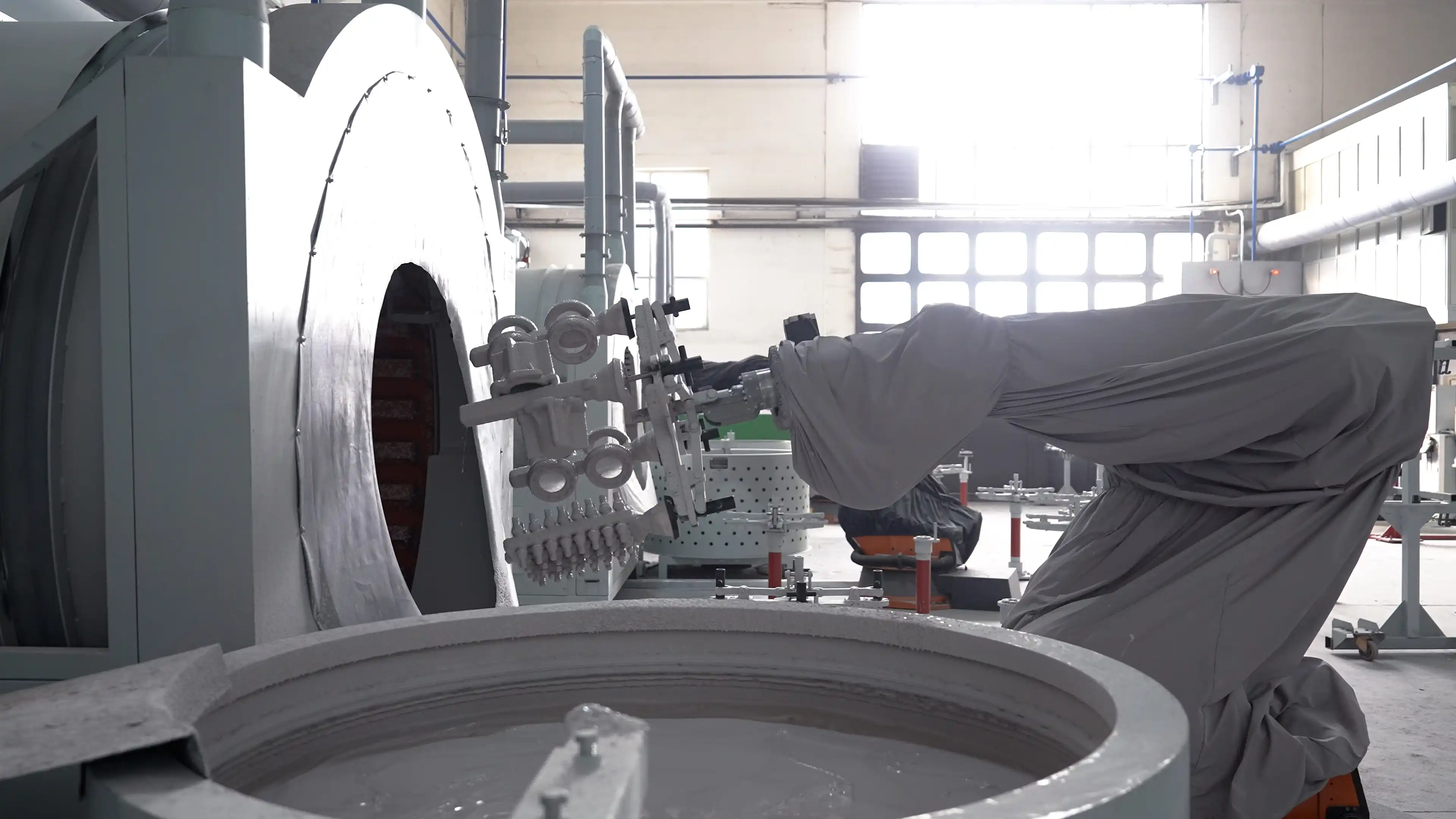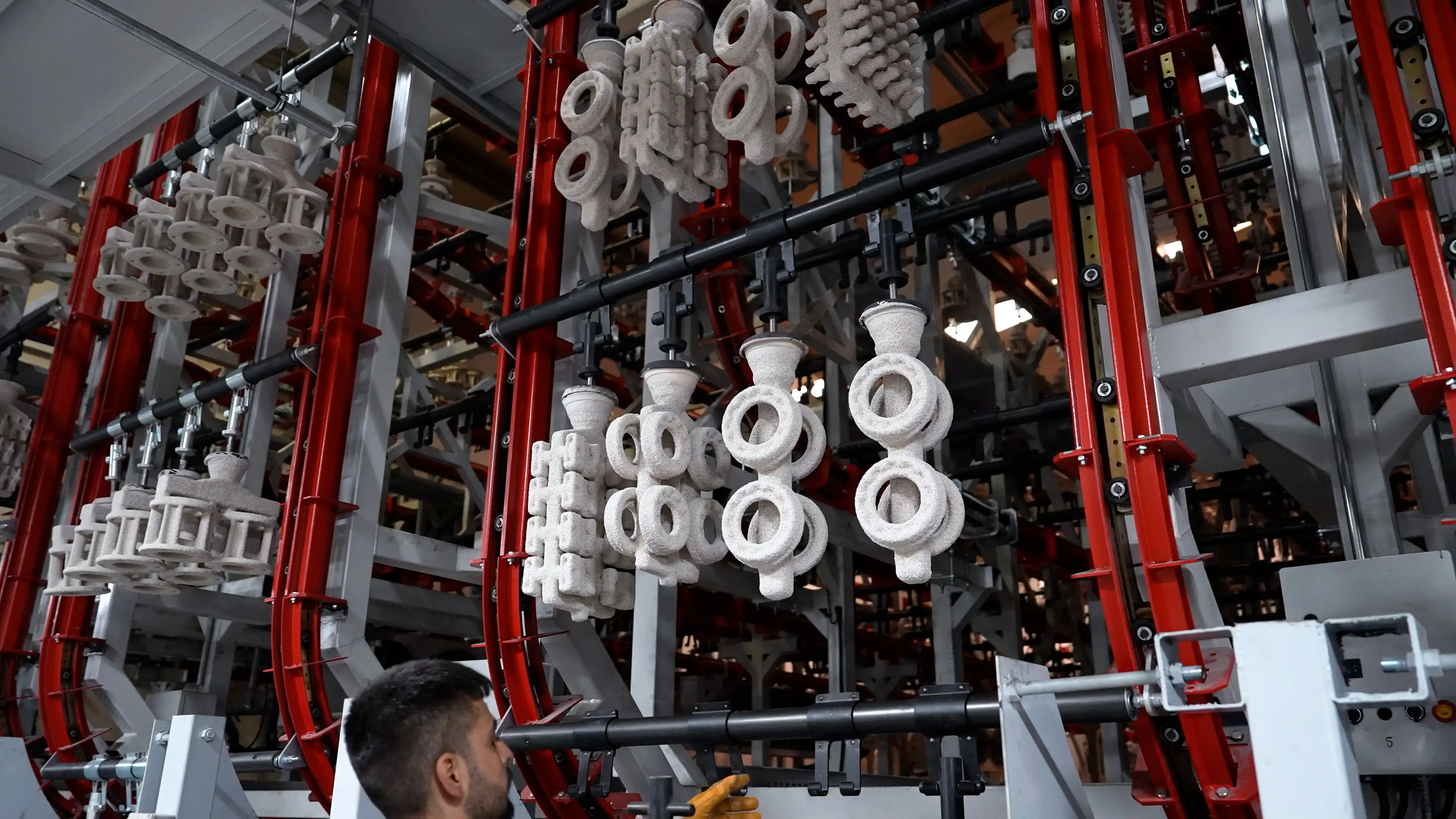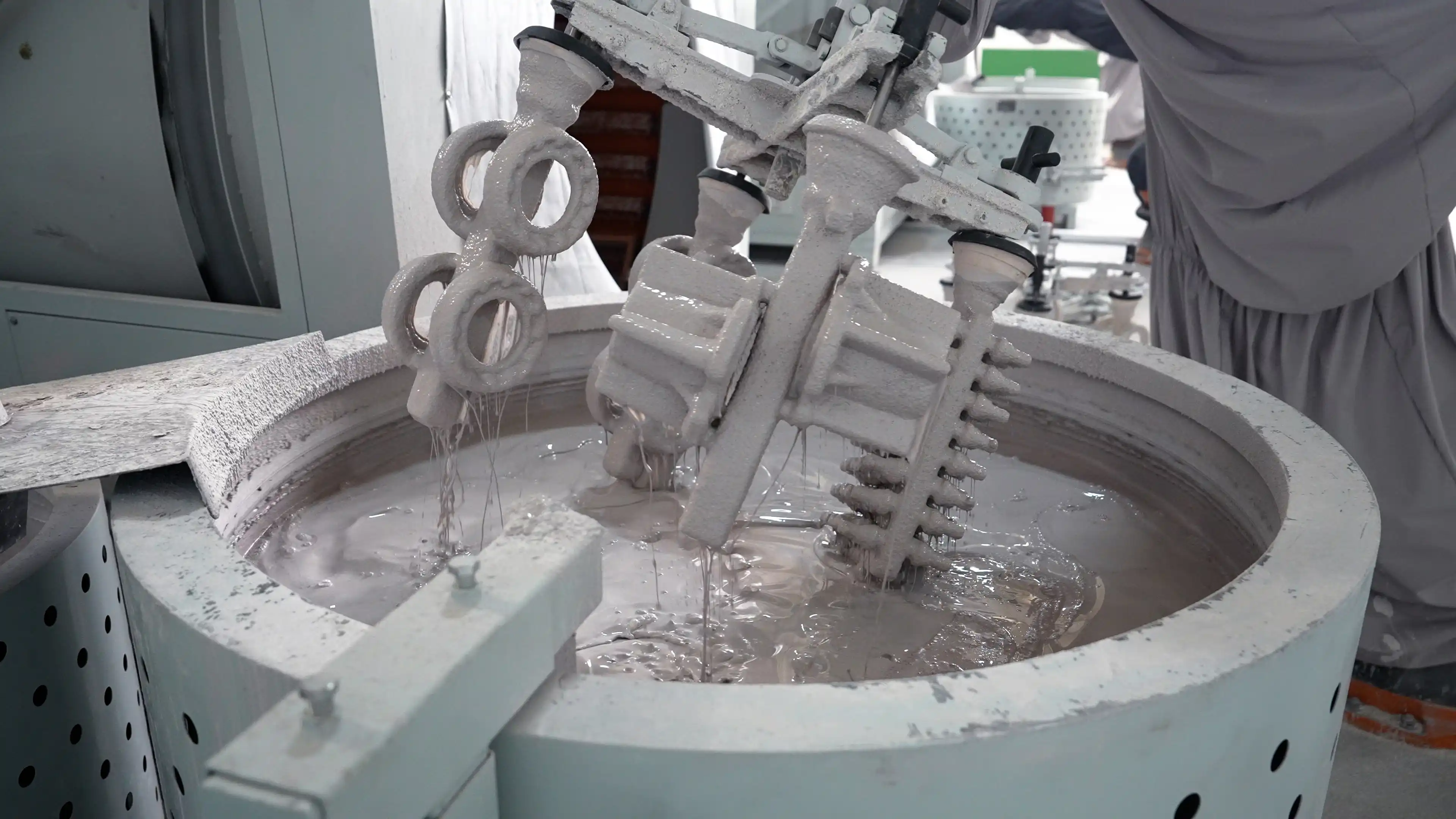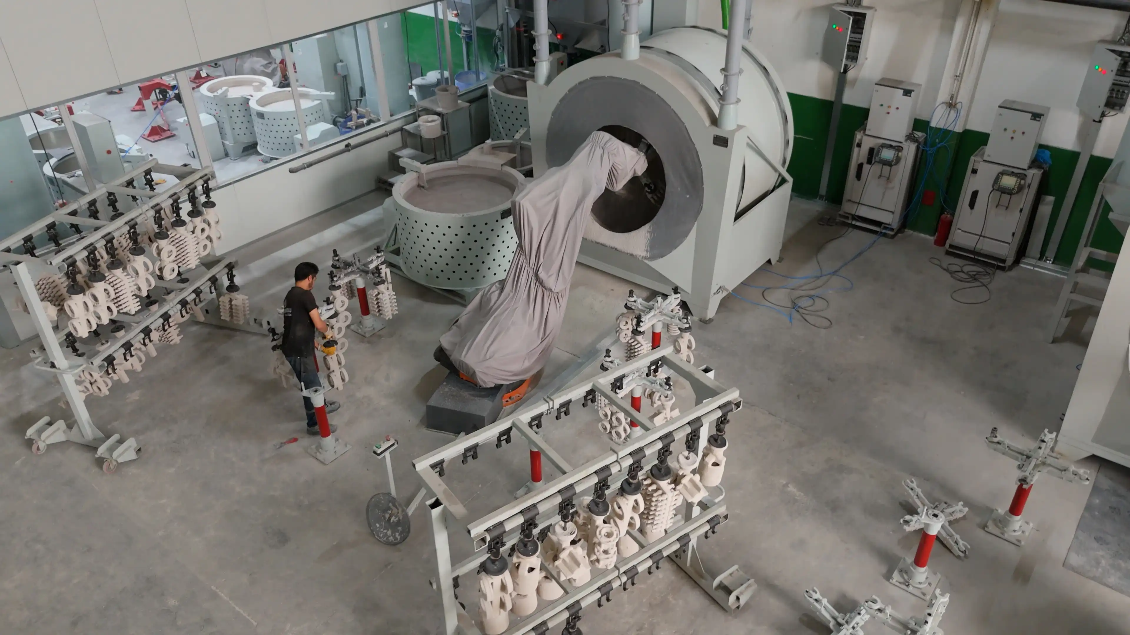 Salkımlar, reçetelerine göre hazırlanmış seramik çamuru ile kaplanır.