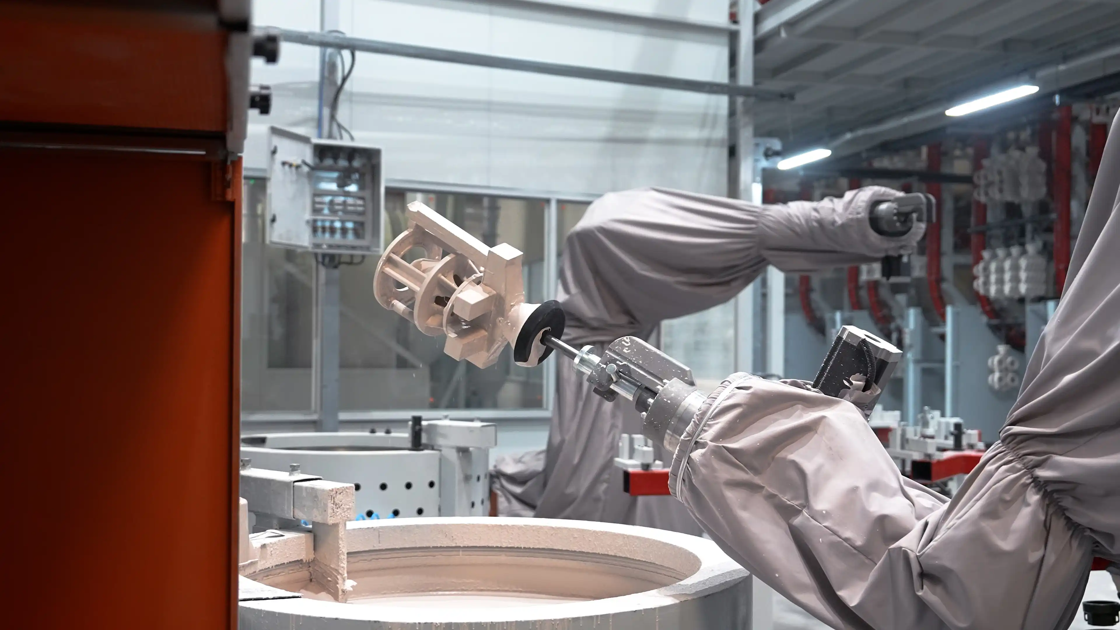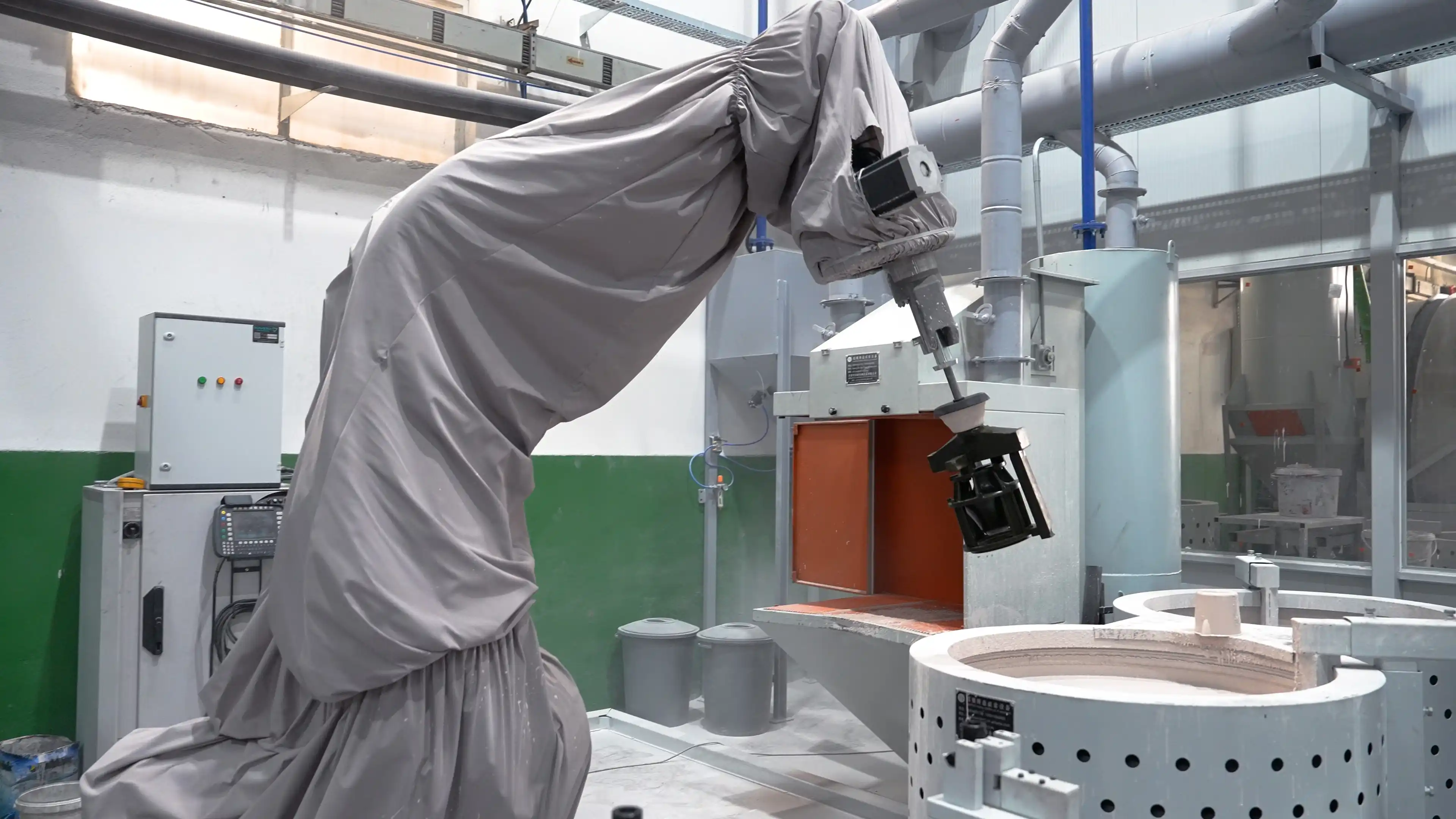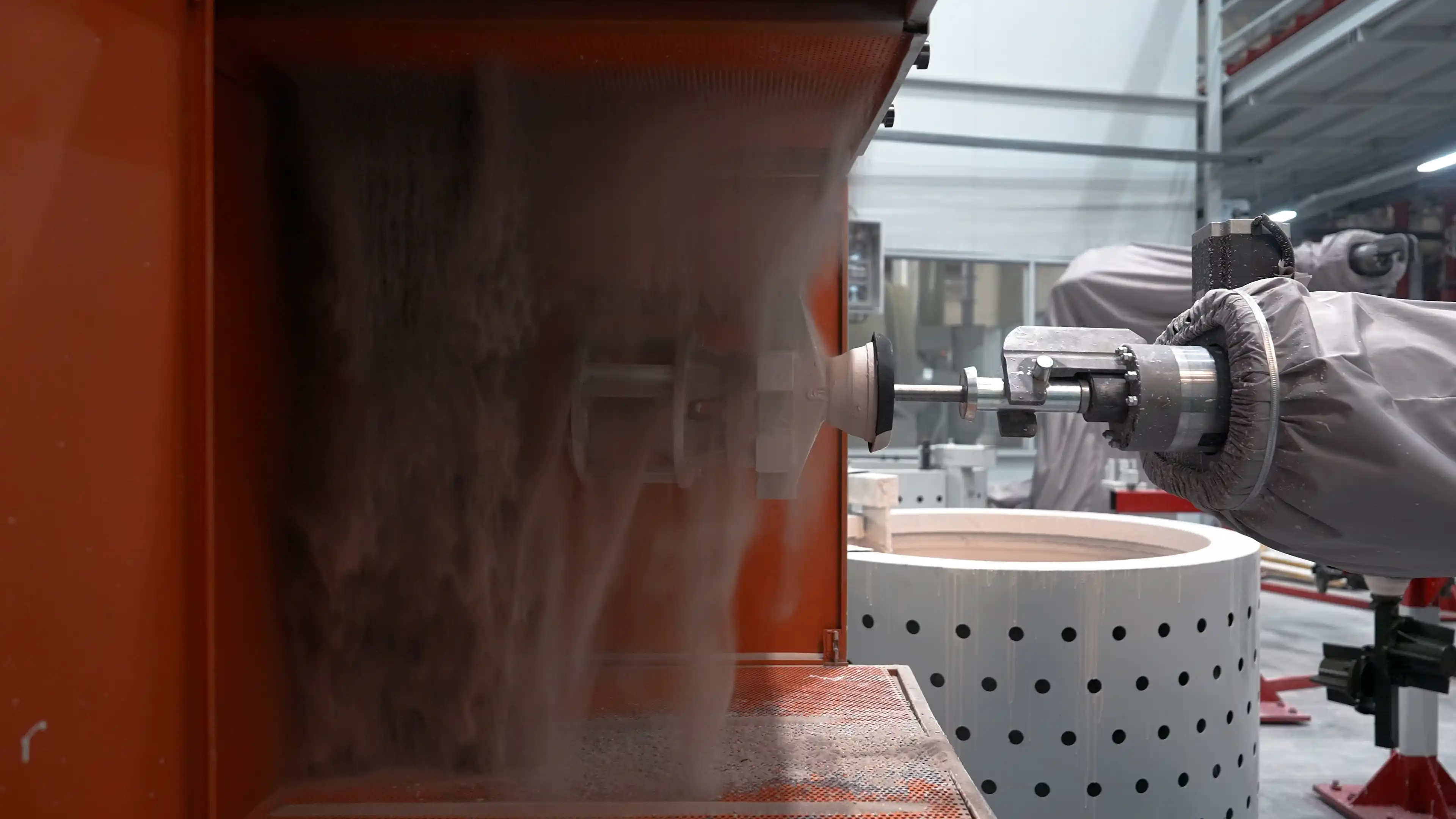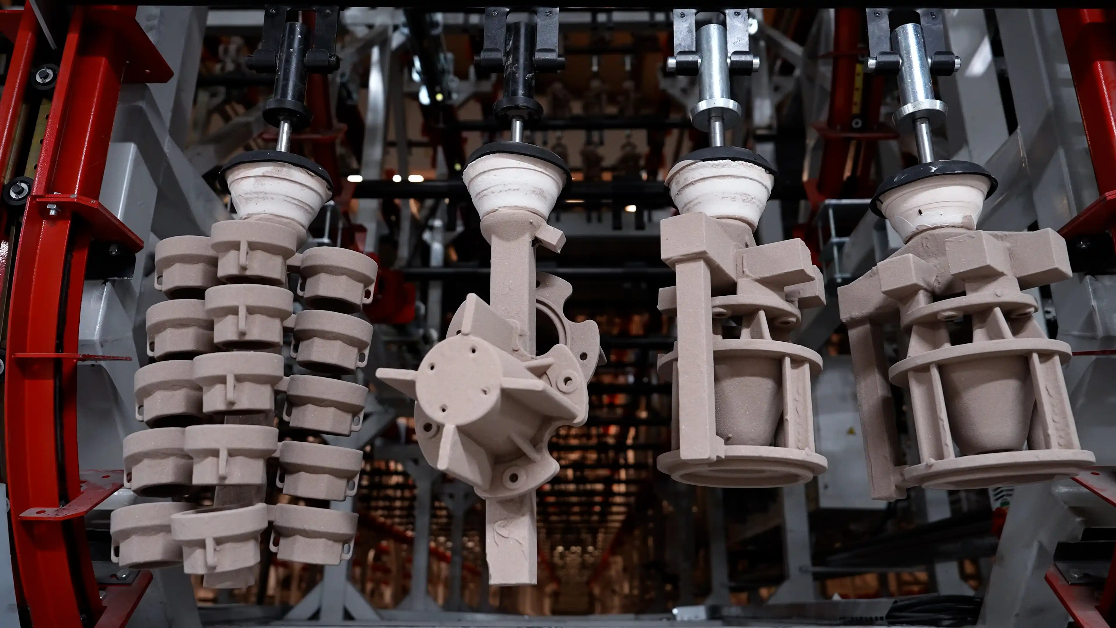 Salkımlar, reçetelerine göre hazırlanmış seramik çamuru ile kaplanır.